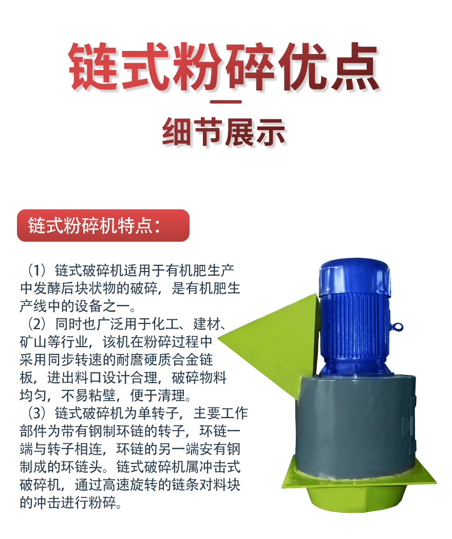 【應用范圍】:鏈式破碎機適用于復合肥生產中塊狀物的破碎,同時也廣泛用于化工、建材、礦山等行業。